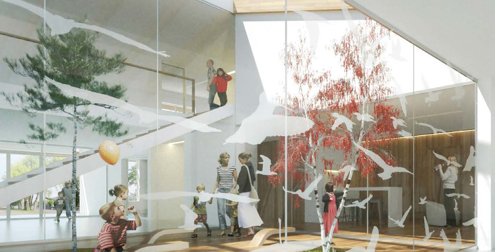 Patio des petits, le parvis d'entrée et la vue générale.